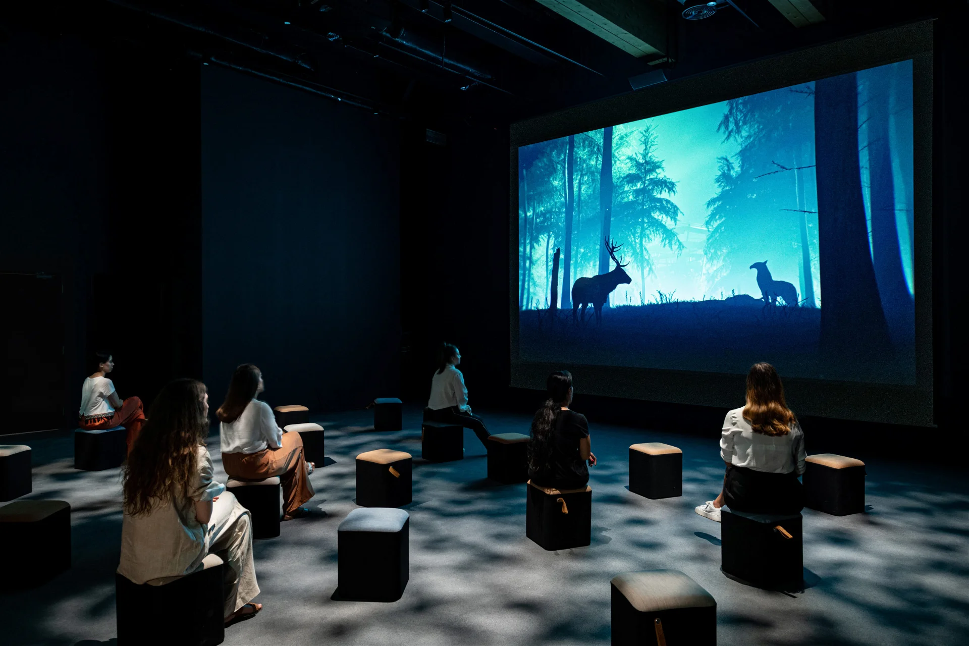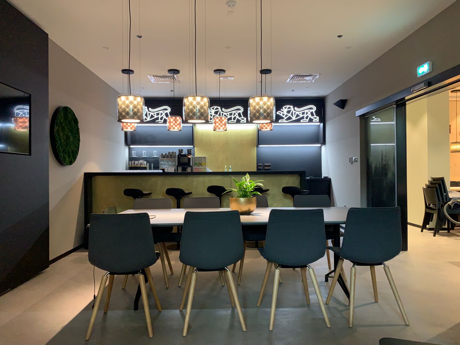 Magan a eu en charge l’Installation d’un lambris sur les murs périphériques, de la « Forêt Noire” (pilier) sur platine métal avec fixation, du mobilier avec connections. Pose et raccordement des boites à lumière, de la signalétique et des accessoires, ainsi que la partie “Vision Lab” comprenant la fabrication et pose du “Velokoter”, socles, cloches, main courantes, support écran led. Impression et pose du sol en adhésif sur toute la partie extérieure et couverte.